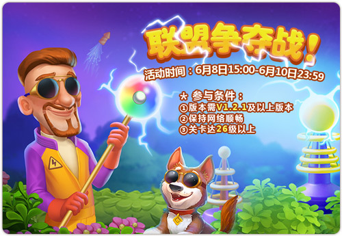 活动内容:活动期间,使用彩虹炸弹(合成或者开局使用都算)获得的分数达到5分即可获得参与奖并进入电光秀排行榜单。每次闯关成功后收集的分数都累计到排行榜单,闯关失败的分数不累计哦。