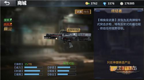除此之外,终结者还具有开镜功能。相比一般的步枪,这会让使用者的视野更明朗,并且也意味着它的命中率将会大幅度的提高,试想一下,一个有着冲锋枪爆发的超远距离步枪,这是一个什么概念?