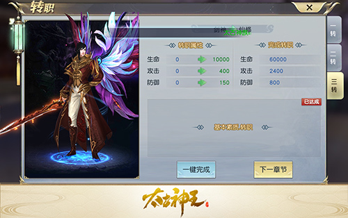 进入《太古神王:星魂觉醒》后,随着玩家战力的不断提升,可循序渐进的提升境界,达到对应等级多重转职逐步开启,如:150级一转、220级二转、280级三转、350四转等。转职相对境界的实力提升来说更具深度,每个阶段的转职均可促使角色完成一次蜕变。
