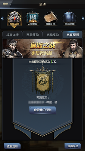 官渡之战S4版本的战斗规则较上个版本并无太大变动,主要是新增跨地区争霸赛以及季后赛的赛制和场外互动内容优化。季后赛名额将增加至32个联盟,即再增加一轮比赛。增加名额的优点在于,把入围空间扩大,使得更多联盟参与进季后赛,并且让常规赛赛程排序运气不好连续碰到超强对手导致没进16名的联盟,有一个东山再起的机会。这使得季后赛的安排更加符合官渡之战中以少胜多,以弱胜强的顽强抗争精神。让各位主公有机会体验一把逆风翻盘,扭转乾坤的游戏体验。见证百二秦关终属楚,三千越甲可吞吴的奇迹。
