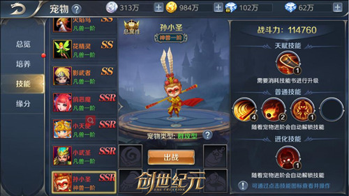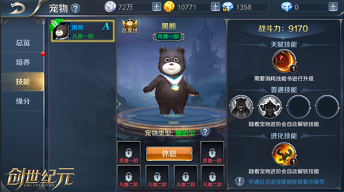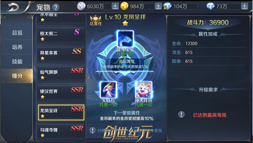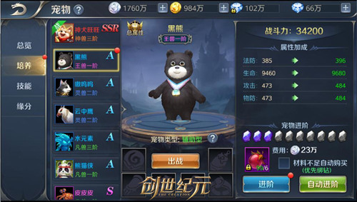 除了上述常见玩法,《创世纪元》还创新性地加入宠物缘分玩法,当拥有特定宠物之后,玩家可以在缘分系统中激活缘分,将宠物升星为更高品质的形态,不仅可以大幅提升战力,还有特殊属性加成。由于这一系统的存在,游戏中不再有所谓的“垃圾宠”和“极品宠”之分,不同宠物在激活缘分后可以适应不同的战斗需求。