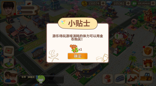 如上图所示,在图正中央会发现有一个写着“…”的小气泡。这是游戏为各位玩家新加入的游玩小贴士系统。它会不定期显示于城镇之中,为各位玩家提示一些游戏小窍门。让各位玩家在游戏过程中,随时可以get到一些建设美食小镇的“新姿势”。