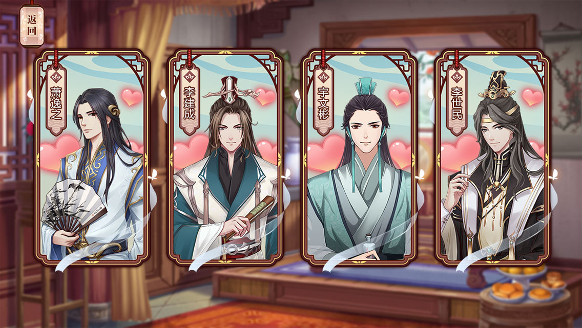 完成日常安排后,会增加游戏进度,进度达到则会触发主线剧情。在主线剧情中会遇到温文尔雅的李世民、雄韬伟略的李建成、英俊潇洒的罗成、超凡出尘的天罡道长等等很多不同性格、不同阶级的大唐美男子,想和谁发展情缘关系都由你自己选择。
