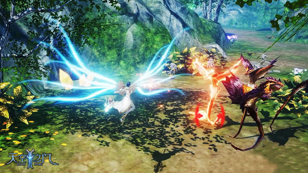 除了顶级的外观效果和360°的全景体验外,《天空之门》中的羽翼还有另一个不容忽视的作用——空中战斗。有了羽翼的加持,玩家的战斗可以完全不局限于地面,既可以在空中向地面的怪物发动进攻,又可以双方以天空为战场,一决高下。你甚至可以在战斗中轻松地在地面与空中随意切换,让敌人无法预料你的走位和进攻。如此自由自在的立体战斗,不仅扩大了战场和游戏体验,更丰富了游戏战斗的策略与战法。一个充满热血与激情的战场等你加入,不要再犹豫啦!