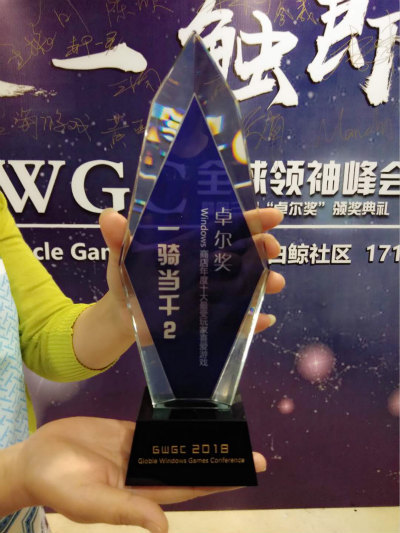 北京一骑当千网络科技股份有限公司的旗舰作品《一骑当千2》荣幸地夺得“2018年度微软官方市场十大最受玩家喜爱游戏”奖。