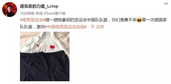即便没有耀眼的光芒,也要在亚运的赛场点亮自己的梦想——今天,“力量哥”黄成辉晒出了自己的亚运会电竞中国队队服照片。8月24日,他就要启程前往雅加达,代表中国参加雅加达-巨港亚运会皇室战争的比赛。
