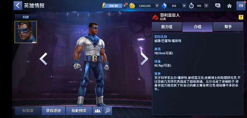 漫画中的初代蚁人皮姆博士在做实验的时候出现了失误,变大之后无法进行缩小,此时比尔博士改良皮姆粒子之后不仅让皮姆博士恢复了原状,还让自己也获得了变大变小的能力,成为了名为“歌利亚”的英雄。