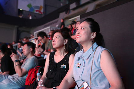 比如我身边坐着两位从香港过来观赛的玩家,一位是姐姐,今年60岁,一位是妹妹,也有50好几了。她们是香港选手Aron的铁杆粉丝,同时也十分喜欢同队的MVP选手“力量哥”。这两位爱好者一年能在上海与香港之间来回五六趟,就是为了在现场看NOVA战队的比赛。而这次亚运会,两人最大的愿望就是能够看到黄成辉与Aron两人在决赛中同时登场。
