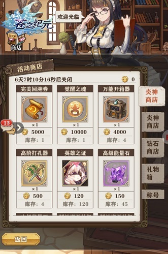 而在活动期间更有神秘商店与觉醒之魂赠送活动等着大家! 活动期间进行酒馆招募十连抽或六连抽一定次数后即可获得觉醒之魂!同时各位团长进行冒险任务、击败作战点BOSS、大苍穹、帮助他人事件等均有机会触发特供商店。在特供商店中各位玩家即可获取各种珍稀道具!