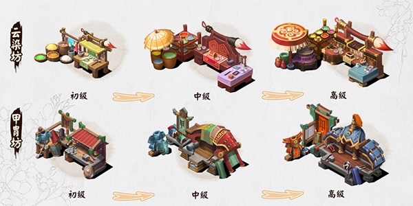工欲善其事必先利其器,有一流的项目,更要有一流的硬件。武器、防具、配件、宝物等多种产品需求,一张万金油工坊怎么够?专业而考究的工坊,让打造工艺更加精细,高级工坊更是有化腐朽为神奇之能,所出皆无凡品。同时,还能根据店铺发展规划,分配工坊的升级侧重,万行做不如一行精!