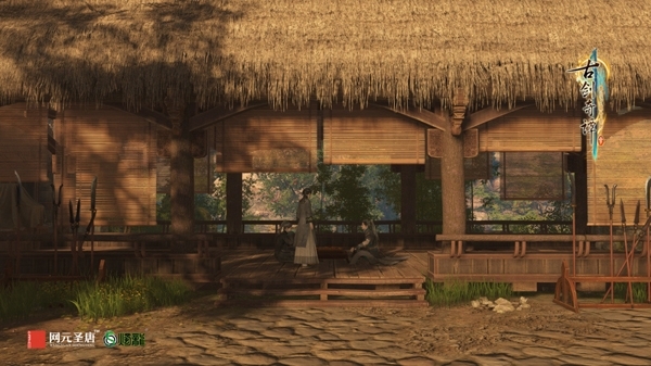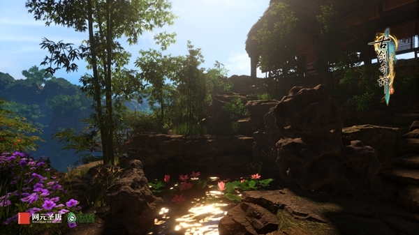 空地后方的长亭是北洛与其师曲寒庭对弈谈心的地方。长亭之外,草木葳蕤,数类鲜花竞相开放,别有一番韵味。
