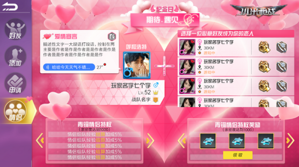 据悉,本次更新会对社交框架进行重构,UI界面更加简洁便利,“人气玩家榜”和“情侣功能”的加入,让玩家能在游戏内产生更多的交集。玩家可在个人信息中上传照片和语音,配合着能实现全服互通的语音喇叭功能,形成环环相扣的社交矩阵,帮助玩家更好的融入到游戏环境内。