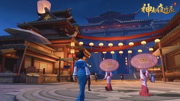 除了妖灵的设计之外,《神都夜行录》中的主要场景也极富盛唐时期的国韵风光,其中表现最为突出的莫过于神都洛阳。从高空视角俯视整个洛阳城市,满眼都是盛唐时期的亭台楼阁,一座座圆形或者宝盖式穹顶高耸入云,看上去宏伟壮观。