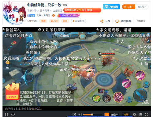 直播王者荣耀而红起来的主播各有特色,无双选的是王者荣耀里冷门的单挑模式。他在直播间设下擂台,开设奖励,欢迎任何人前来单挑,不管是人气主播还是无名水友,无双一视同仁让挑战者自行选择应战英雄。而如果有一些新的挑战玩法,也会提前公告。