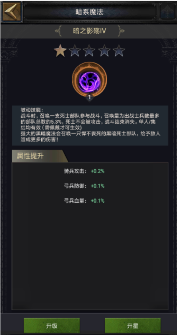 由于是随机抽卡所以激活魔法技能的顺序我们无法自主决定,但是激活后选择追求(升级,升星)哪个魔法技能则是我们根据自身属性和主兵情况来定的,这里给大家留下一个讨论的空间,大家可以根据不同兵种研究讨论出不同的魔法技能搭配组合。