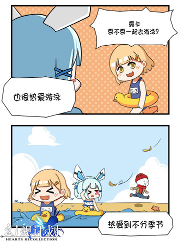 追星的露卡终于让我们看到了花季少女应该有的模样,其实,露卡在跟同龄人在一起时还是会经常露出少女活泼的一面,这不,好朋友菲莉丝又来找露卡游泳了。