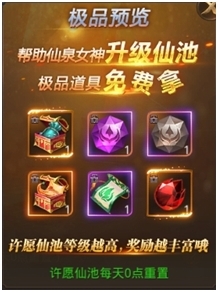 3)当仙气达到升级所需经验时,可手动升级许愿仙池,许愿仙池等级越高奖励越好;