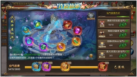 5)每级许愿仙池最多可获得本级仙气的上限,许愿仙池每日0点重置。
