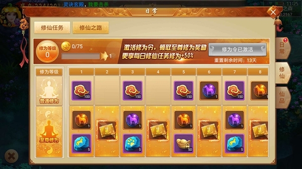当玩家达到170级,《剑逆八荒》修仙之路自动开启。完成日常任务,即可得到一定的修为。修为可以提升修为等级,每个等级都有对应的丰厚奖励。值得一提的是,激活修为令除了能领取至尊修为奖励,还能享受“每日修仙任务修为增加50%”的超强福利,让你轻松赢在修仙的起跑线。