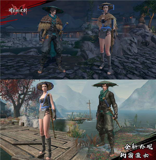 新增男女主角外观时装各两套:烟波钓翁、轻剪浪花、寒江渔女、香引芙蓉,这四套时装让你体验孤岛渔人江边独钓的奇特意境