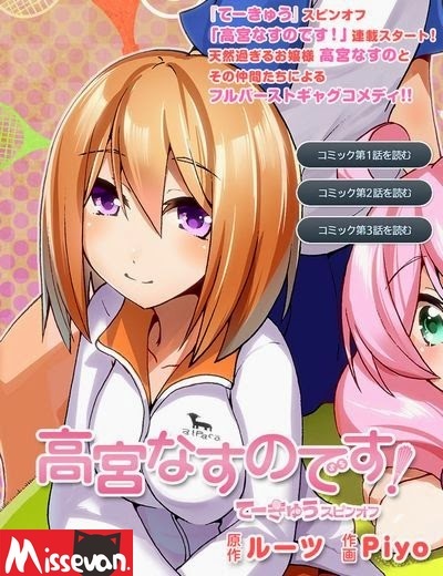 《网球并不可笑嘛》*(てーきゅう)是由Roots原作,由Piyo作画的一部日本漫画作品,EARTH STAR Entertainment发行的月刊漫画杂志《Comic Earth Star》连载中,描写网球部所属的四名女高中生的日常故事。外传作品《我是高宫茄乃》(高宮なすのです!)则是2014年开始于《Comic Earth Star》月刊连载的作品,故事将以本传中的高宫茄乃展开。