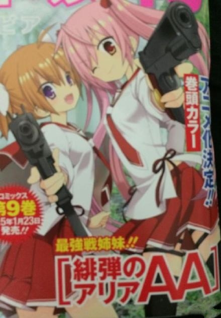根据最新情报显示,赤松中学原作、小舞一提供人设并由橘书画子作画的漫画《绯弹的亚里亚AA》动画化决定!此前,《project code AA》的第1、2弹均已公开,分别是“《绯弹的亚里亚AA》小说版刊行决定”以及“WEB广播将于12月18日以“绯弹的亚里亚广播 武侦高情报室消息”之名的特别番组形式复活”。而原本与第2弹一样预定将在今冬发表的第3弹,如今看来应该就是指此次的动画化企划了。