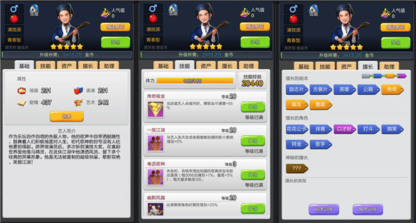 125级:粤语歌神——休息时,有概率增加拍摄的歌舞片的票房(每5000总属性+1%,最高5%)每天最多触发三次;
