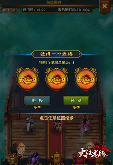 2.每个玩家在每周第一次进入关卡时,均会获得系统给予的三个初始武将进行战斗。