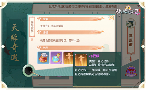 大侠行走忙于江湖惩奸除恶,艺术修养可能有时候会稍稍落后,所以《神雕侠侣2》还为你提供了更加低调沉稳的轻功炫酷路线。游戏中的轻功虽然点击就送,不过还是有一些各门各派的独家轻功轻易不外传。想要获得这些隐秘级轻功,必须经历各种奇遇才行。获得虽然辛苦,但当你获得稀有轻功后,无需费心费力自创独有轻功,光是那稀少的特效就能彰显你的不凡。
