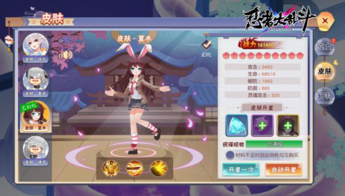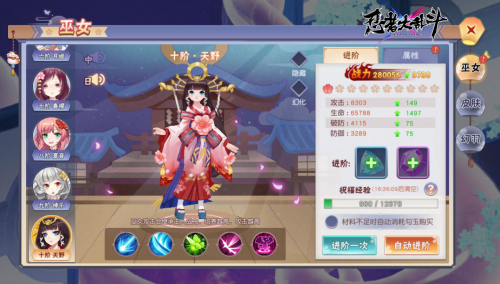 随着战斗与历练,巫女也会随着主角一起成长,成为更高阶级的巫女。进阶所需的材料有巫女符石与高级巫女符石,随着阶级的提升,巫女的形象也会随之变化,愈加华丽!
