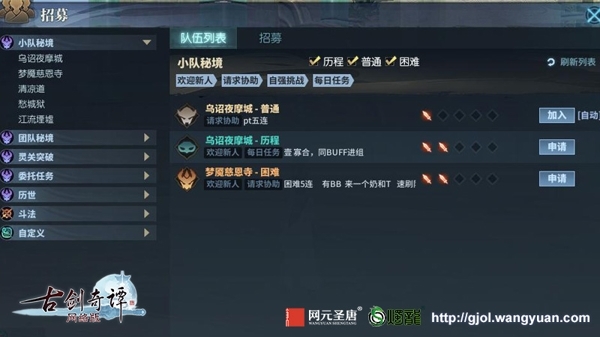 打开界面、切换标签、入队离队、申请入队失败时将自动刷新招募列表。