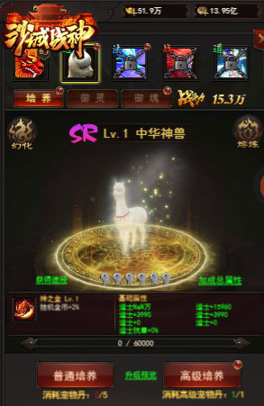 在灵兽系统中,培养分为普通培养和高级培养,玩家可以消耗宠物丹及高级宠物丹进行培养。培养灵兽将提升基础属性及技能属性。
