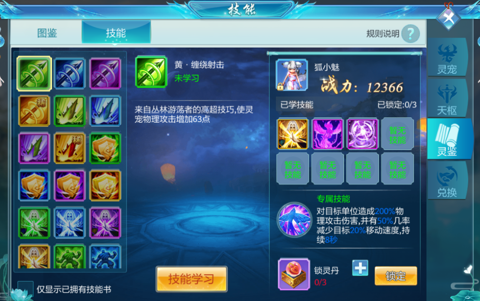 3. 灵宠最多可锁定三个技能,锁定第一、二、三个技能分别消耗2、4、6个锁灵丹。
