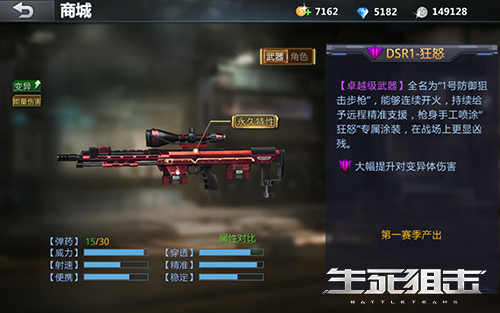 除此之外,作为卓越级的武器,部分狂怒武器还有额外的特性。比如我们的DSR1-狂怒,可以大幅度提升对变异体的伤害,再加上其自身的连狙效果,是变异战中完全不可忽视的火力存在。无论是火力支援还是战绩收割,相信都不会让大家失望的。最重要的是,这套武器的获取门槛实在是低之又低,只需要提升赛季等级即可。