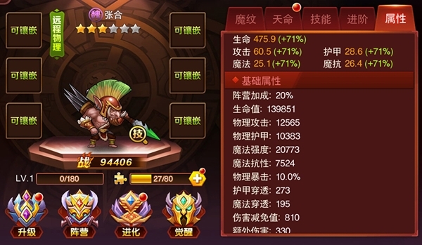 大家看看我1级的张合,初始成长三维攻击是魔法的两倍还多,成长加成大家是一样的,都是71%,你再看看最终属性物理攻击12000+,魔法强度20000+,这是为啥?这就是进阶加成作用到了每个英雄的效果。我在通往巅峰之路1的时候就阐述过这一条。我们贫民不可能靠战力碾压对手,就要靠集中发力在一个作用点上。
