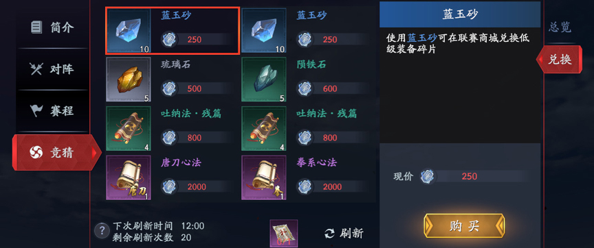 参与联赛的48支队伍均可在联赛结束后领取不同档位的奖励!新增道具【如意金砂】【绛紫砂】【蓝玉砂】,可在商城中兑换各对应品级的装备碎片。
