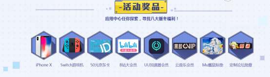 MuMu模拟器“暖冬寻宝大作战”全新寻宝玩法轻松有趣,数重超值大礼已经散在MuMu应用中心各个产品详情页面,玩家只要每天打开应用中心寻宝就可以获得!寻宝礼包不仅有网易云音乐会员、B站大会员、京东卡、UU加速器会员、Mu酱鼠标垫、定制论坛勋章,还有iPhone X与Switch游戏机大奖等你来领!