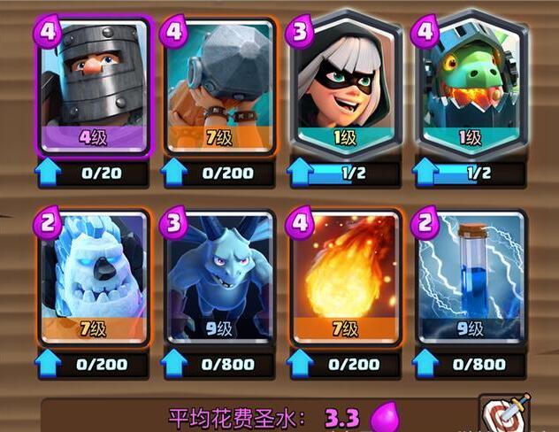 还记得去年亚洲杯时期水水再决赛中用的一套三冲卡组(攻城锤+暗夜女巫+刺客)吗?现在它的升级版来了,不同于旧版还需要沉底女巫,新版的三冲再加入了黑骑之后冲击力更强,攻城锤+黑骑+刺客简直可以说是来什么灭什么了。主要的3个核心不变之外,剩下的卡牌均可以进行微调,带火球法术的爆发力更强,而带毒药则是消耗能力更胜一筹。