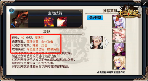 众所周知,讨伐战又称“屠龙战”,而在屠龙战场上一直流传着一句名言:“任何不以输出为目的的技能都是耍流氓!”所以说屠龙的要领就是需要炮位在有限的时间内将输出最大化。再结合讨伐战BOSS“破灭之瞳”的技能灼烧和致使晕眩的特性,所以在选择阵容时具备免疫和减伤技能的英雄也是打龙的先决条件。既然如此,那咱们在英雄选择范围方面就明朗了不少。