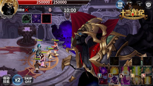 首先是炮位的英雄选择,既然如上述所强调的需要单体输出和在有限时间内伤害最大化两大特点,那具备单体输出先发秒人能力的特殊英雄“皇帝-帕斯卡”无疑就成了屠龙战的炮位最优选。其1技能【破坏巨人】无视防御的600%单体魔法伤害堪称《十二战纪》里最爆炸的单体输出技能,加上2技能【黑暗之门】和被动技能【天子权威】的初始化1技能冷却时间和附带的伤害无效效果,让帕斯卡在最短时间打出高额输出的同时还拥有一定程度的自保能力,完美契合了屠龙战所需的两大要素。