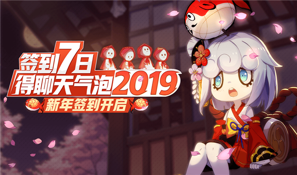 新年之际,每月一次的主题签到如约而至!1月1日 04:00 ~ 1月14日 23:59,累计签到7日即可获得红红火火的聊天气泡“2019”,还有英雄体验卡等奖励等你来拿!
