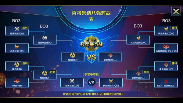 其他八强战队:动作巨星(JX),永恒(YH),金刚葫芦娃(JGHLW),GC-Team(GCT)。