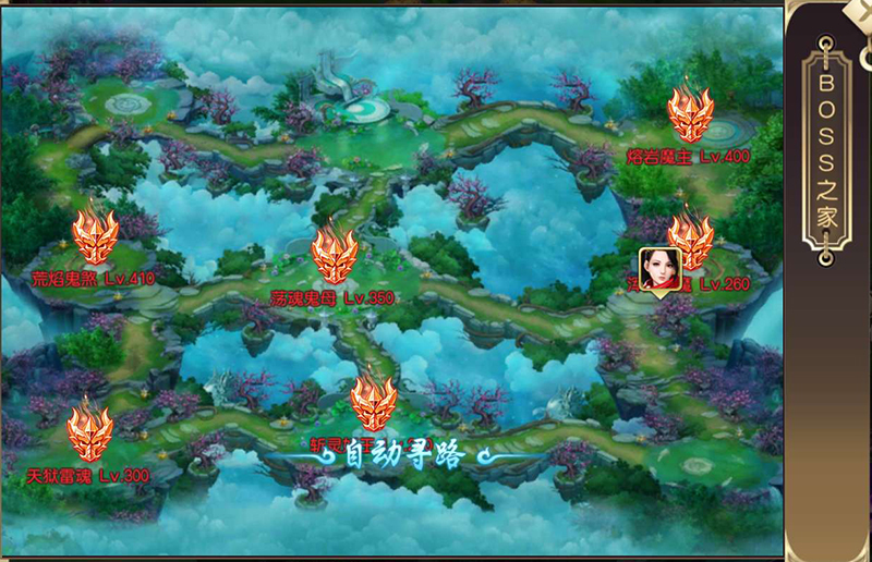 相比于世界BOSS区域可以随进随出,《灵剑劫》BOSS之家的进入则有一定门槛。该区域范围相对较小,各BOSS之间相距不远,通常可以看到玩家BOSS的身影。