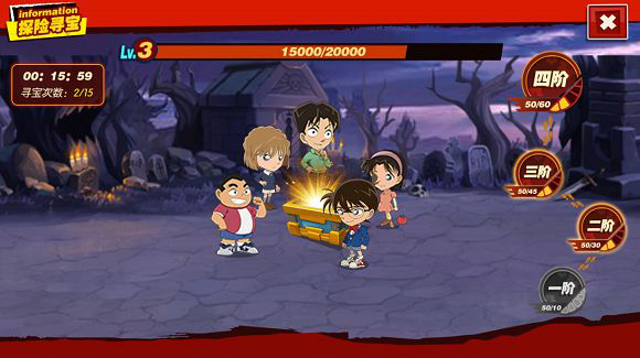 最后要说的就是寻宝系统。寻宝有次数限制,每隔40分钟回复1点次数,次数上限不能超过15次。寻宝背景有森林、沙滩、古堡、度假村等。成功寻找到宝箱会获得金钱、声望和道具奖励,如果运气足够好会有2倍、4倍、10倍奖励。