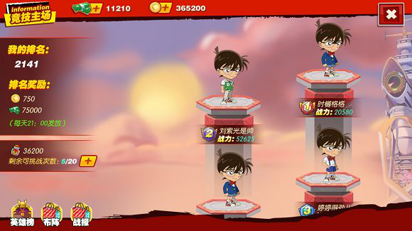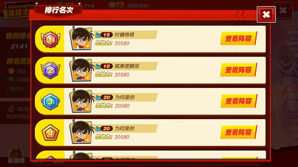 竞技场还可以查看自己相关的战报和战斗回放。英雄榜可以查看本服前20名玩家伙伴战力。