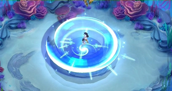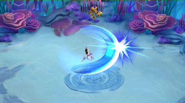 剑意成虹,气贯八方,技能“白虹贯日”的效果则是对自身圆形范围内10个敌方单位造成伤害。