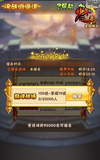 《少年三国志》4周年盛典今日开启,玩家除了可以体验到暗金军师、联盟驻地等新内容外,还可于1月21日中午12点,在游戏内报名全新的跨服顶级竞技赛事——“决战逍遥津”。整个赛事分为初级,中级,高级,无双、至尊、巅峰、王者七个战场,分别对应100-109,110-119,120-129,130-139、140-149、150-荣耀19、荣耀20-荣耀99七个等级段,更加细化的等级划分将使比赛更具公平与竞技性。