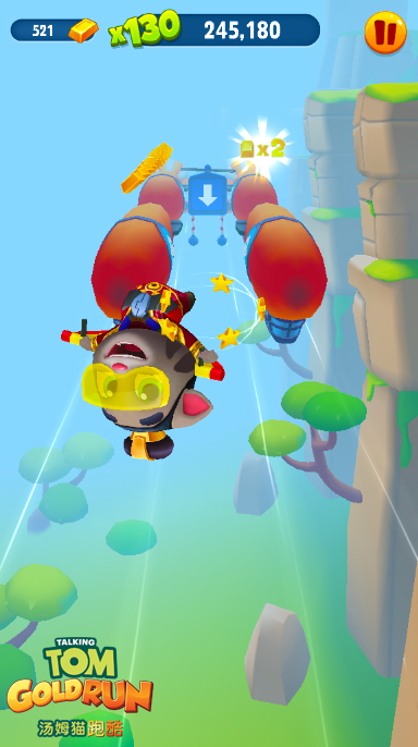 这个春节,汤姆猫将带大家玩点不一样的。在体验了滑板、滑雪等花样跑酷技能之后,《汤姆猫跑酷》手游在新春版中将带各位小伙伴们解锁全新的技能“飞行跑酷”:穿着酷酷的滑翔服,戴着帅气度100的防风护目镜,在山间穿梭,利用各种飞行特技躲避空中的障碍物,当然,千万别忘了吃金币呦。