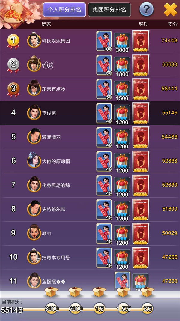 2. 根据名次可获得相应的奖励,已消耗的积分道具不影响总的积累值。