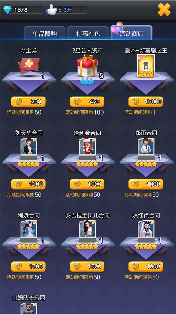 积分可以在商店兑换相应的艺人碎片和剧本: